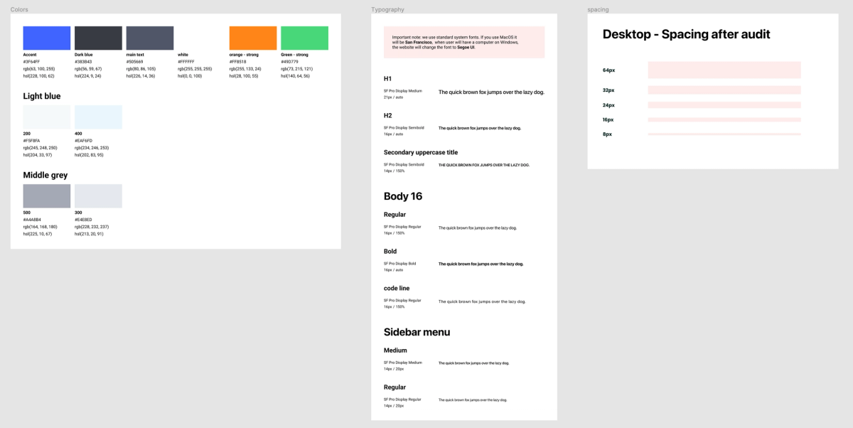 - We decided to use system fonts (San Francisco for Mac and Segoe UI for Windows).